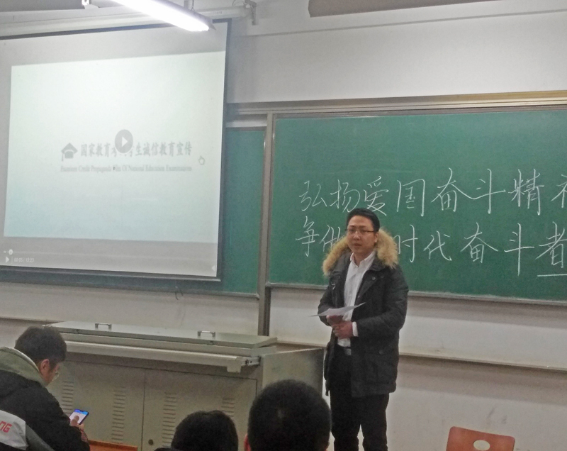 学院党委刘韦副书记在所带班级的主题班会上明确要求大家,要认真学习习近平新时代中国特色社会主义思想和全国教育大会精神,通过各种途径广泛和深入了解改革开放以来我国的伟大成就和学校已取得的办学成就。刘书记说,改革开放的故事已经充分证明了中国特色社会主义制度的巨大优势,我们要坚定跟随中国共产党的领导,进一步坚定道路自信、理论自信、制度自信、文化自信,青年学生更要自觉弘扬和践行爱国奋斗精神,努力成为新时代的奋斗者!