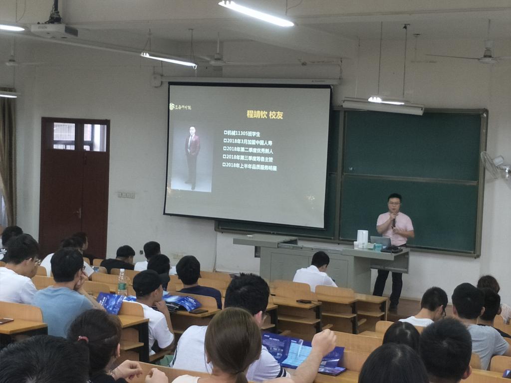 陈总监作为就业“场”上的博弈一方,从简历制作、面试官所想、实用技巧三大板块进行了深入的“敌我”剖析,为大家“出谋划策”。由于针对性强,讲授生动活泼,现场不时响起阵阵掌声。正值校庆来临之际,校友程靖钦向大家深情地回忆了在母校度过的4年美好时光,鼓励大家珍惜在校的时光,好好学习,好好成长,为将来更好地奉献社会奠定坚实的基础。
