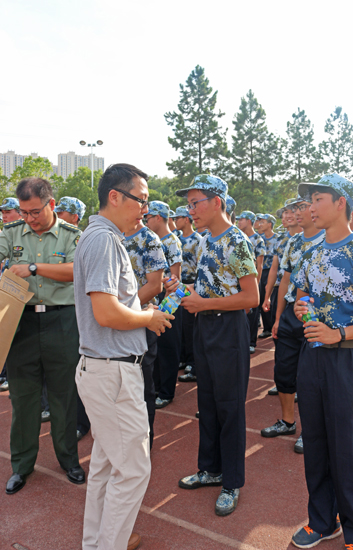 顶着炎炎烈日,满怀着殷殷真情,刘书记一行为艰苦训练的18级新生们送来了夏日凉饮,所有的问候与关怀都成为了烈日酷暑里最清凉的记忆。