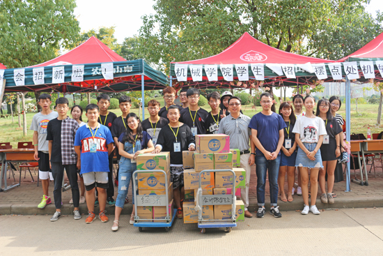 刘书记一行到达训练场后,首先向承训教官了解了永利集团新生军训的有关情况,对各教官表示感谢,也对同学们艰苦训练的成果表示肯定。随后,领导、老师和学长学姐们一起为参训新生们分发了慰问品。面对领导老师们的关心,新生以嘹亮地军歌表达了的感谢。