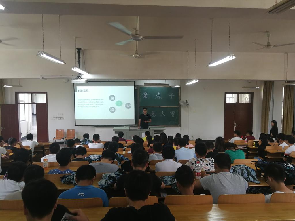 5月25日中午,由机械学院团委学生会举办的2018年“金点子”设计创意大赛总决赛在8-D101举行,永利集团团委书记王双喜老师、武汉兴正科技咨询有限公司总经理赵浪出席了本次大赛并担任大赛评委,永利集团近百名创业爱好者到场观摩了本次比赛。