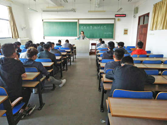 在机械类专业16级和17级的班会上,担任班主任的卫冬妹副书记主持班会讲述了革命先烈为革命抛头颅、洒热血的英雄事迹。通过教育,同学们深深感到,今天的幸福生活来之不易,是无数革命先烈用生命和鲜血换来的,先烈们的精神永远值得大家好好学习。