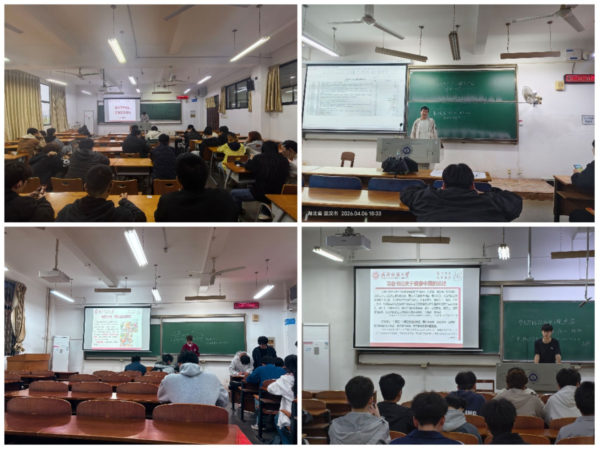 班会上,老师紧扣世界卫生日主题,组织全体同学学习习近平总书记关于健康中国建设的重要论述与2026年全国卫生健康工作会议精神,引导学生深刻理解健康优先发展战略。老师还围绕个人卫生、合理膳食、科学运动、心理健康等内容详细讲解健康知识,普及国家“体重管理年”行动要求,推介华中地区科学食谱,倡导学生做自身健康第一责任人。老师还同步通知了《关于做好2025-2026学年第一学期综合素质评价工作的通知》和《关于开展2025-2026第二学期大学生体质健康测试的通知》,提醒同学们按时完成相关事宜。