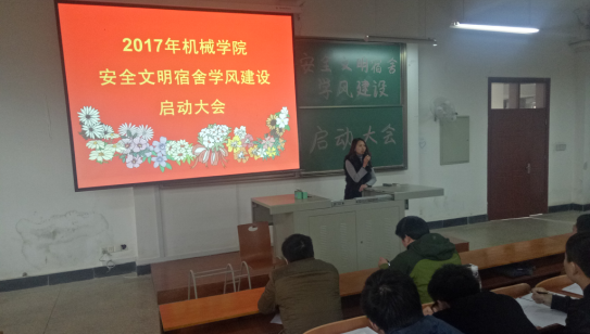 卫书记发表动员讲话:她对学生代表的发言表示肯定,对今年安全文明宿舍学风建设提出了要求,并激励同学们为自己的学习目标而努力,在宿舍里互帮互助,学习上相互竞争,共同进步。创建和谐共处,学风良好的宿舍文化和学习氛围。