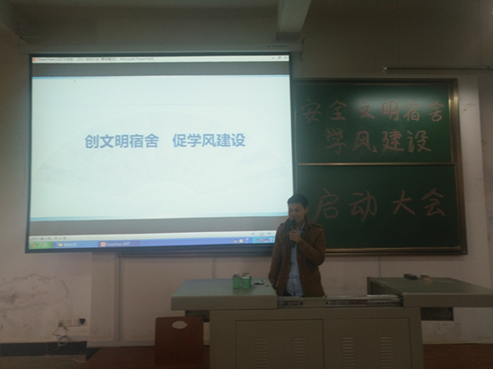 大会上,学生会副主席张洋对前期院公检落实情况进行了分析总结。揭露了院公检中一些不良现象。学生会副主席黄希对永利集团课堂做考勤通报。王运发老师对“创文明宿舍,促学风建设”提出意见:学院将以宿舍建设与学风建设相结合为中心。狠抓宿舍安全文明建设,各类检查成绩将通过宣传栏,微信公众号和机械代言人同时公布,加大对优秀宿舍的表扬和不合格宿舍的曝光力度。建立并完善宿舍建设过程中的奖惩制度。狠抓学生党员和学生干部宿舍的建设。在宿舍学风建设方面,今年首次以宿舍集体目标考核制度来促进宿舍建设与学风建设有机结合,各宿舍根据当前实际情况,制定高于当前学习水平的整体学习目标,以学期为单位进行验收,对达成目标者学院奖授予该宿舍“学风建设优秀宿舍”称号并进行奖励。学院还将把近年来我院学子在考研、就业、课外科技创新、专业相关赛事等方面的优秀成果在宿舍区进行巡回展示,让更多的同学了解专业知识,参与专业赛事,积极创新实践,提升自身竞争力。