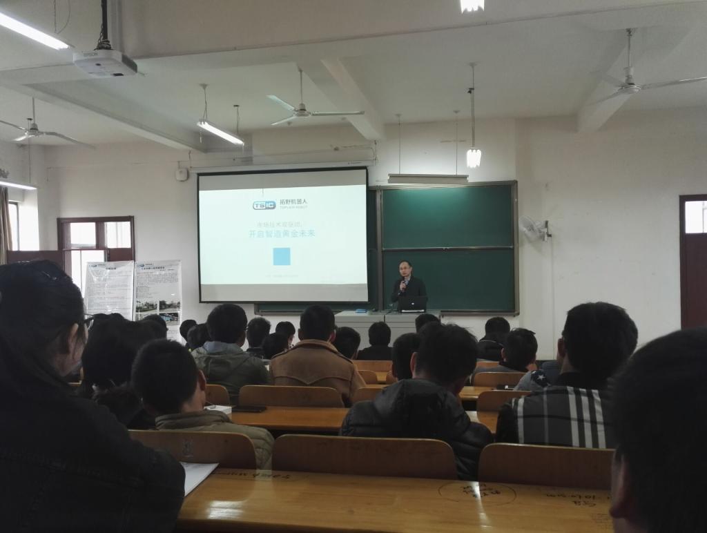 3月16日下午2点,拓野机器人副总经理兼技术总监杨安明先生在yl6809永利官网集团阳光校区8D-201做了以“技术市场双驱动, 开启智造黄金未来”为主题的企业家科技讲座,机械学院200余名学生参加了此次报告会。