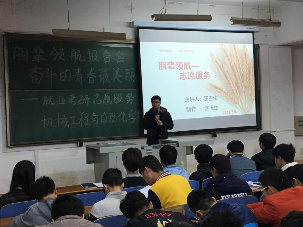为引导新生尽快适应大学生活,合理规划大学生涯,充分发挥朋辈领航的作用,3月8日下午2点,永利集团在03-T101举办了以“奋斗的青春最美丽”为主题的朋辈领航报告会。永利集团团委书记王双喜、永利集团辅导员杜清华老师出席了此次报告会。测控专业的“就业达人”白冰,机械专业的“考研达人”刘正和永利集团志协会长、“拓梦”支教团队长汪玉生与现场近300名同学交流分享了大学成长奋斗的一些经历。