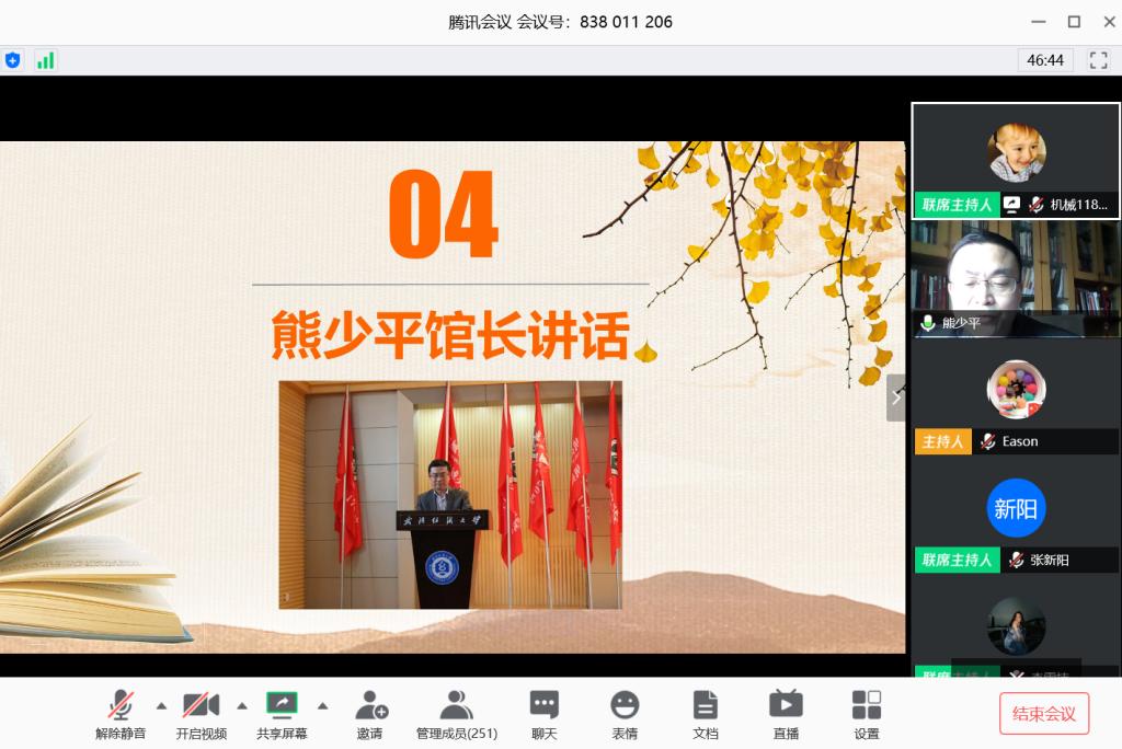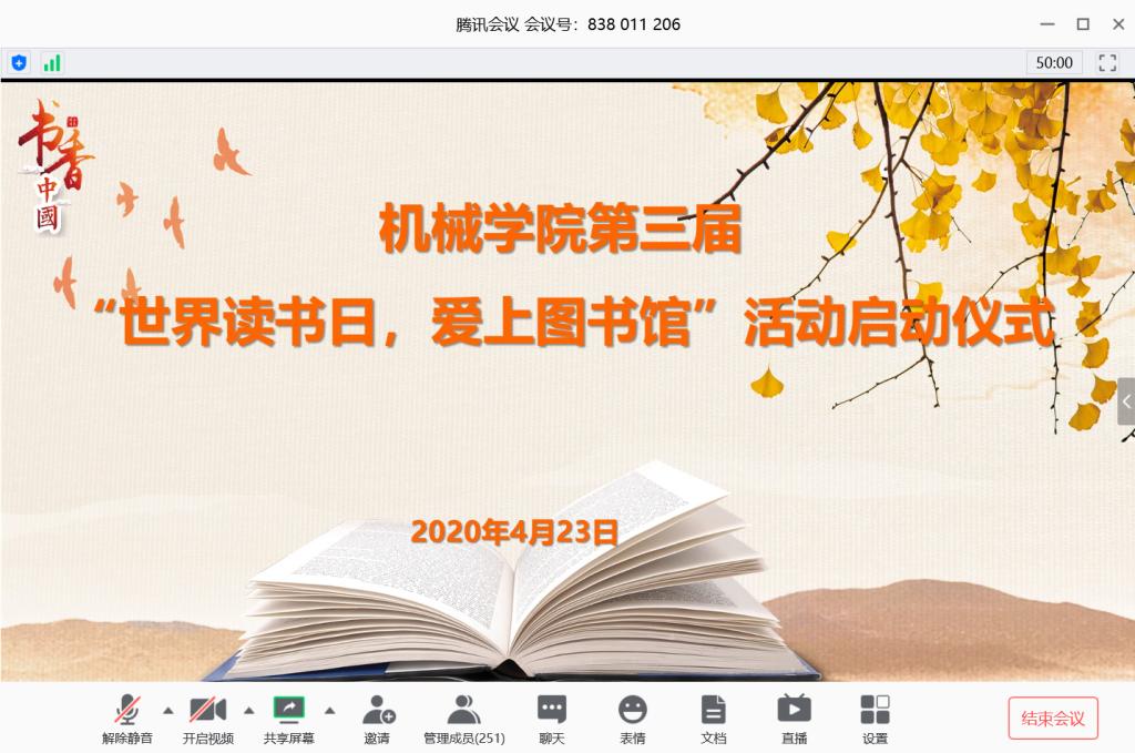 为迎接第25个“世界读书日”, 引导师生养成良好的读书品格,将阅读培养成一种生活态度与精神追求,永利集团组织开展了第三届“爱上图书馆”活动。4月23日,由于新冠肺炎疫情影响,活动启动仪式在线举行,学院肖信华书记、图书馆熊少平馆长,学院刘韦副书记,全体辅导员老师以及200余名学生代表参加了活动。