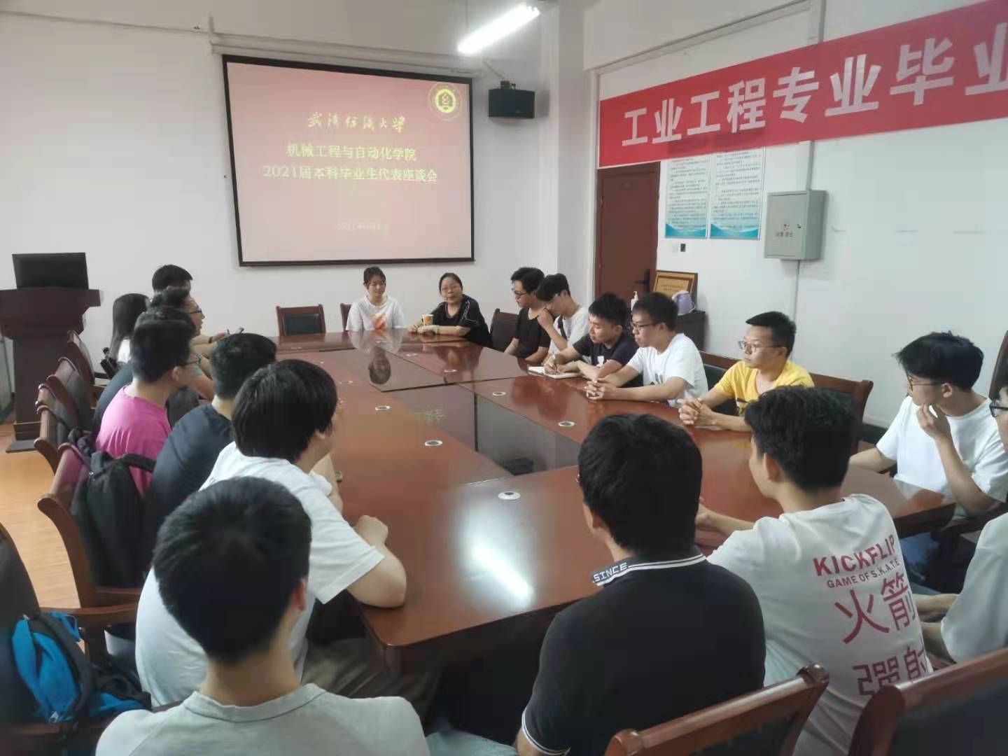 近日,yl6809永利集团2021届本科毕业生代表座谈会在学院会议室召开。学院党委书记肖信华、院长余联庆、党委副书记刘韦、辅导员方林和2021届本科毕业生代表参加了座谈会,共叙师生情谊,畅聊美好未来。