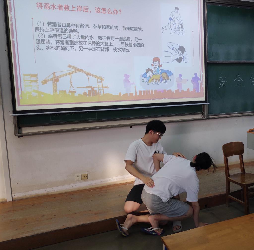 此次主题班会,主要围绕“什么是安全生产月”、“安全教育的六大重点”以及“安全生产万里行活动主要内容”三个方面进行。首先由各年级学生代表依据多媒体形式向同学们详细讲解安全教育的三个重点内容。讲解过程中,学生代表将学习、工作和生活中的多种安全隐患一一列举。然后由班主任做补充和总结,并依据科学、医学常识向大家讲解如何防范安全问题,以及紧急避险守则。最后,各年级辅导员安排到场同学进行溺水施救等模拟演练。