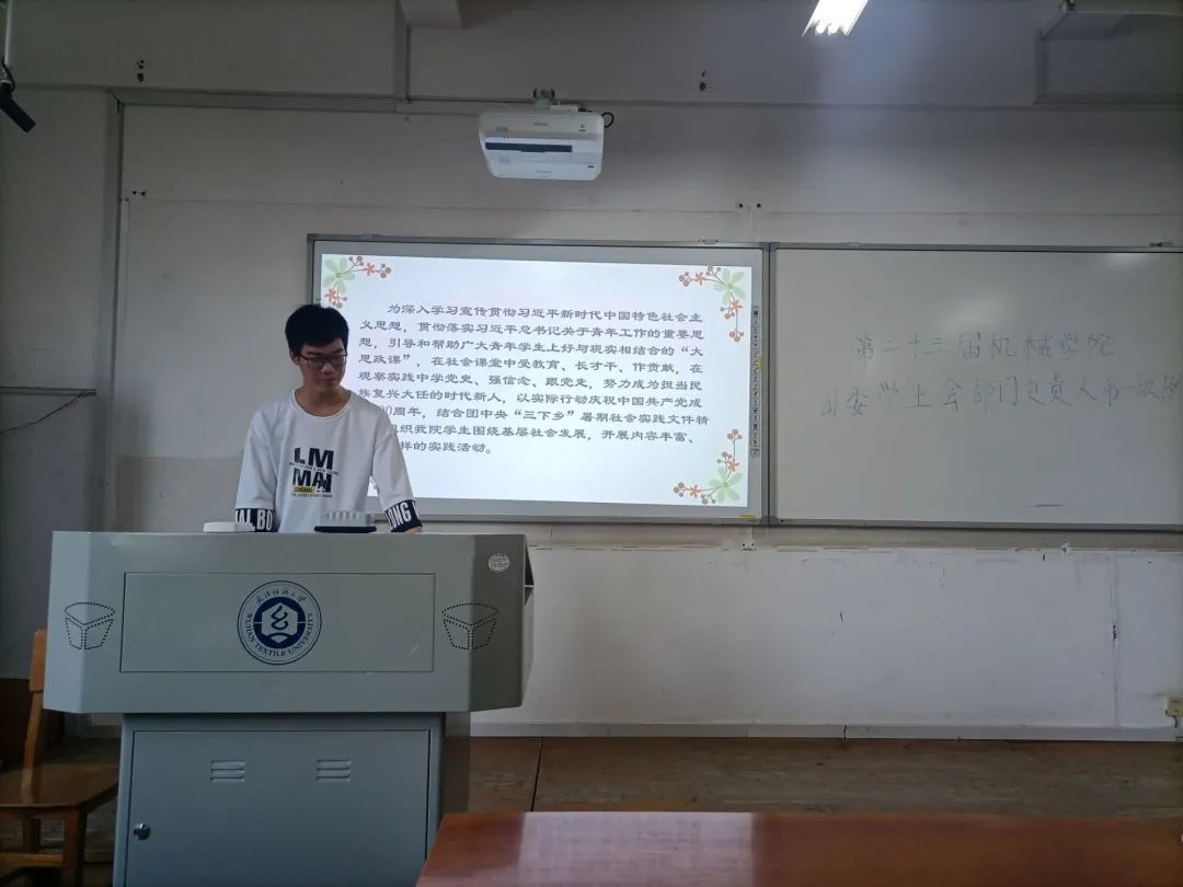 会议伊始,六位团委学生会主要负责人依次上台发言。朱文鑫认为学生会工作离不开责任感、集体荣誉感、奉献精神,应当不畏艰难,大胆去做,作为团委学生会第一负责人,朱同学详细铺排了后续学生活动,“到人到事到时“。冯俊龙和白宇鹏表达了对新一届学生会的美好期待,也对分管部门提出了具体的要求。严晓旭就权益服务部和宿舍管理部之前存在的问题作出说明,并要求学生会成员能谨言慎行,认真对待每一项工作。李郑华就学生会的风气与礼仪问题提出相应要求,提醒各位部门负责人以身作则。赵波对暑期社会实践活动做出说明,并动员同学们积极参与,打造机械特色实践品牌。