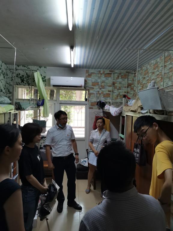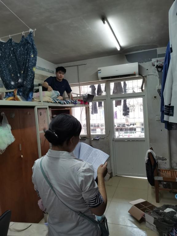 随后,刘书记和全体辅导员分成3个小组深入学生宿舍开展安全大检查。检查组认真查看了学生宿舍封门、安全和卫生情况,并与暑期留校学生进行了交流,了解他们的学习、生活安排。查寝老师提醒学生要牢牢树立宿舍安全意识,要做好疫情防控和防火、防汛、防盗、防诈骗等工作,叮嘱陆续离校的同学们关好门窗,在归家途中小心防范,确保自身安全,到家后及时报一声平安!