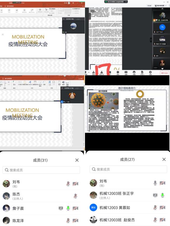 最后,同学们和老师进行了在线交流,各班班主任提醒同学们务必高度重视并严格落实疫情防控工作,认识到病毒传播的危害,坚持生命至上的观念,落实防控工作要求,落地防控工作责任,督促学生接种新冠疫苗以建立安全保障,同时不要出现违反学校纪律的行为,警惕疫情期间的电信网络诈骗。
