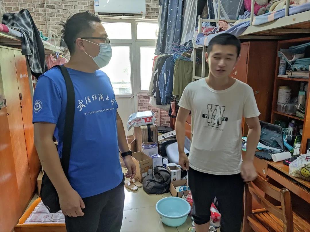 8月22日,武汉市江夏区新冠肺炎疫情防控指挥部发布2021年5号通告,各出城主次干道恢复通行。永利集团高度重视留校备战考研学生情况,8月23日,学院党委副书记刘韦、辅导员王娟、孙毅、方林一行第一时间深入阳光校区永利集团实验室、自习室和宿舍,对学院留校学生进行走访慰问。