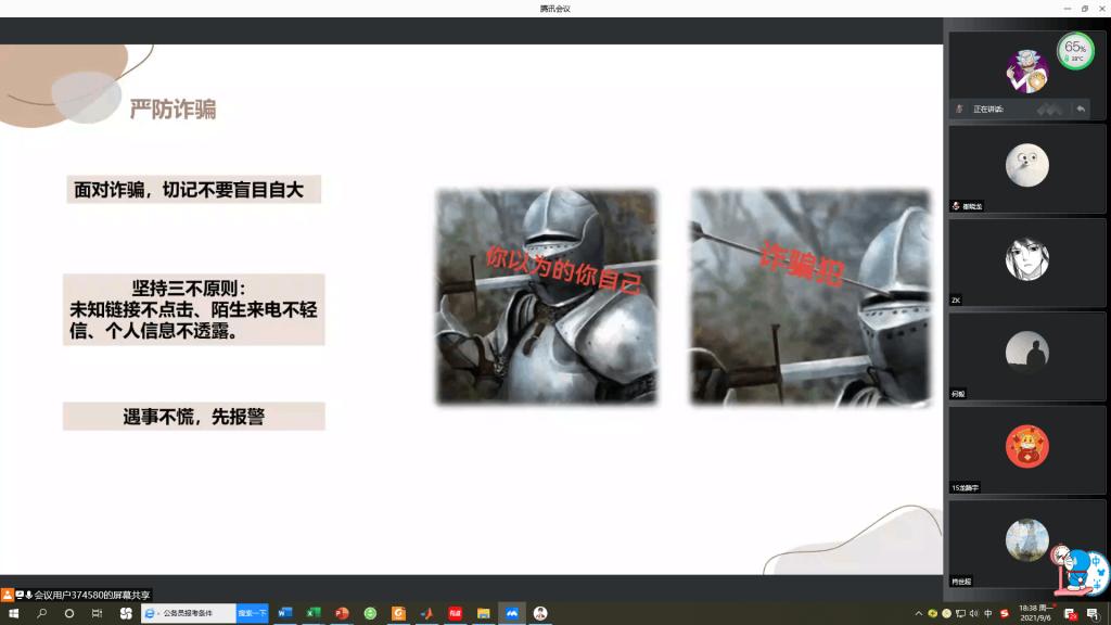 谢老师随后为我们讲解了不同的诈骗类型,强调坚持未知链接不点击、陌生来电不轻信、个人信息不透漏的“三不”原则等防骗知识。