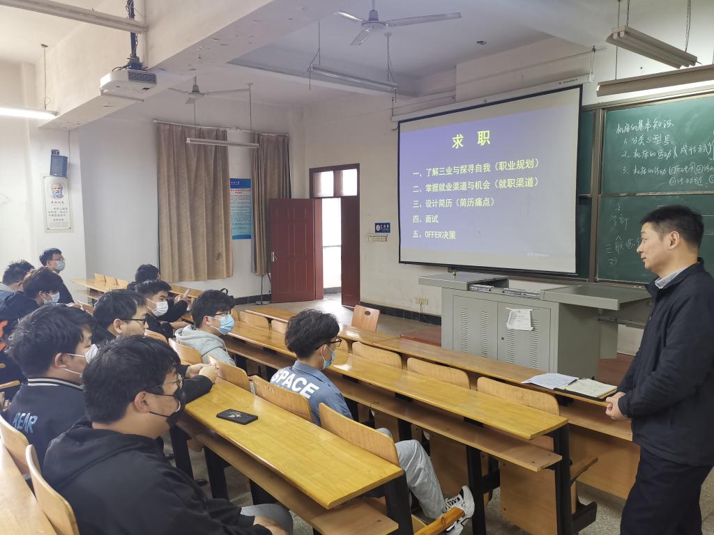 在就业再动员与辅导会上,余院长强调,要先就业再择业,要积极投简历,把找工作签约的主动权掌握在自己的手里。并以两弹一星科学家和部分校友为例讲述了加强学习、不断学习、终身学习的重要性。并从面试的注意事项做了重点讲解,提醒同学们以扎实的专业能力、良好的精神面貌等来征服企业招聘人员。