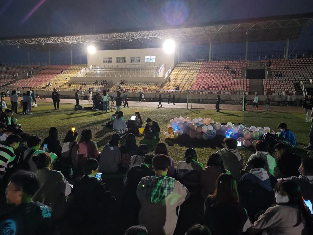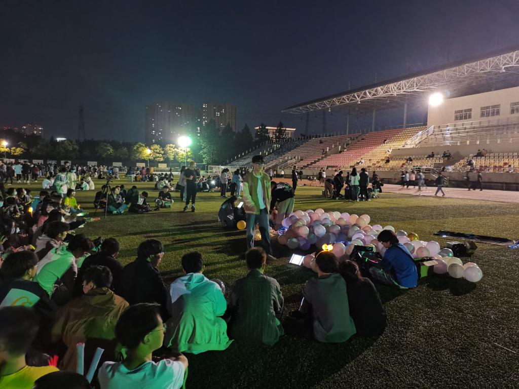 学校足球场上,人山人海的观众,手拿气球的同学,有些挥舞着手中手机的闪光灯,一些观众还拿起手机记录下这一刻,随表演者的音乐沉浸在安静的音乐时光里。这愉快的的休闲时光对大学生而言难能可贵。每一位上台演唱的同学都独具特色,为现场的听众奉上了一场欢快、充满活力的视听盛宴。