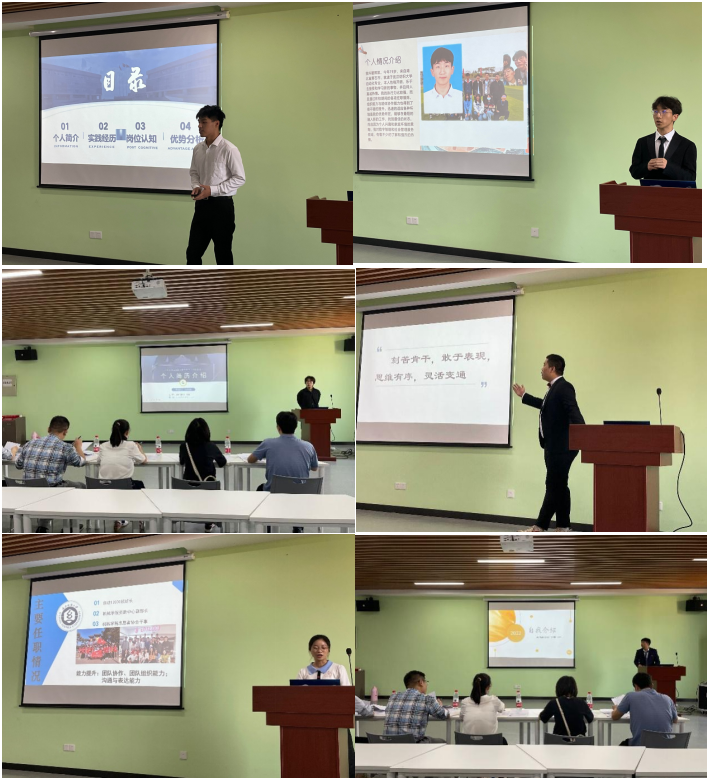 个人展示环节于9月30日在大学生活动中心207进行,特邀招就处、二级学院共五位老师担任评委。参赛选手依次上台,结合个人简介、自身优势、专业技能、职业规划、求职意向等进行展示,选手们良好的职业形象给评委们留下了深刻印象。最终有八位选手成功进入无领导小组讨论。