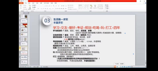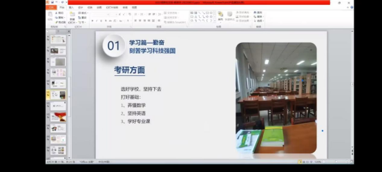 本次会议邀请了永利集团18级学长杨政宇作交流分享,杨政宇首先谈到了学生的本职是学习,勤奋是学好的基础,其次他建议同学们要积极参加学院以及校级的比赛和活动。会议中,杨政宇还展示了他考研的日常生活,鼓励同学们加入铁人班。随后,他建议同学们要提前规划好未来的学习和生活,并提供了一些建议。
