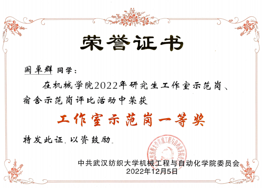 经过综合考察研究生示范岗文化内涵定位、任职经历、为民服务、荣誉成果、实践经历、专业资质等方面的情况,阙卓群、张国盼等8名同学荣获工作室示范岗,7A630毛佳恒、6A105王蕊等宿舍群体荣获宿舍示范岗。通过示范岗平台的引领、组织和辐射作用,在今年复杂的疫情形势下实现了学生零疫情事故和学业质量的提升。