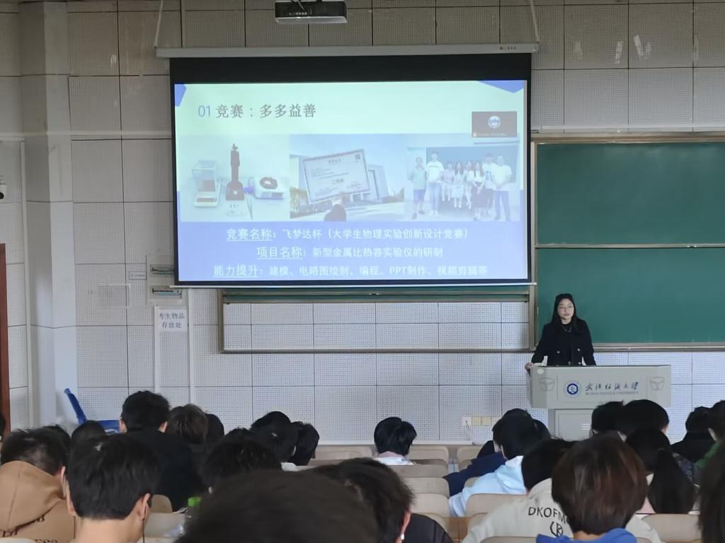 刘英琦以《一份不知道如何命名的PPT》风趣幽默的介绍前期学习生活的心得,介绍了参加机器人创意大赛所建模型在仿人格斗赛道获得了省赛一等奖和在全国大学生金相技能大赛获得个人二等奖的方法和经验。他提到要积极参加志愿服务活动,为社会出一份力,尽一份心。