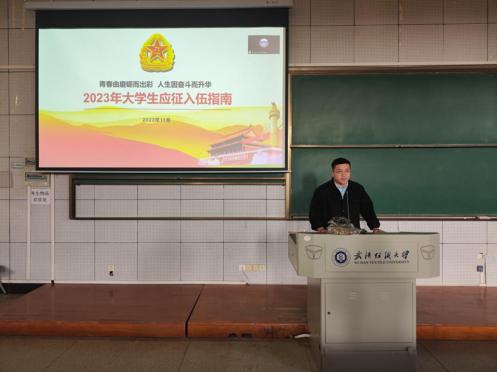 近日,永利集团组织召开2023年征兵政策宣讲活动,学院退役士兵优秀代表方鹏、杨志伟为我院2022级400余名学生进行了征兵宣讲,学院征兵联络员方林老师主持会议。