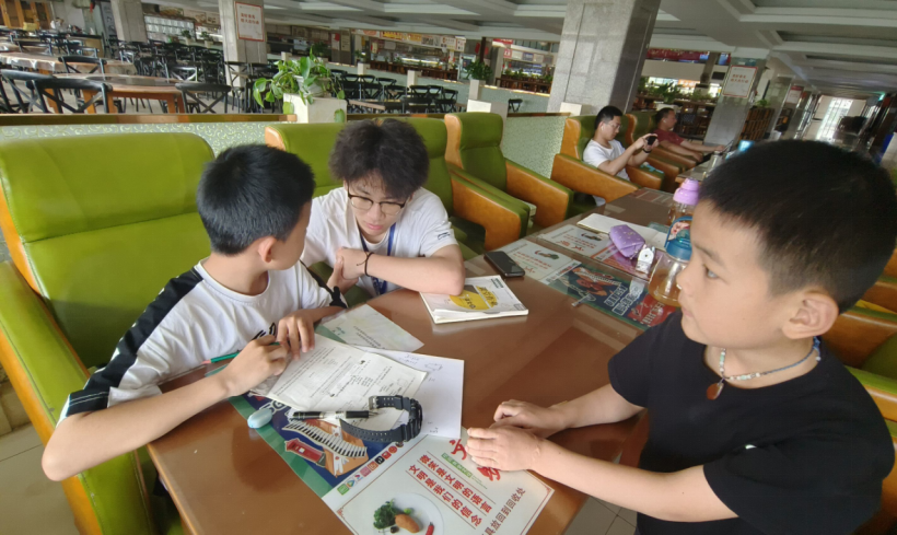 为了响应共青团中央“关爱农民工子女”的号召,同时加强我院志愿者协会与社会的联系,践行“让爱心永驻校园,用真情回报社会”的宗旨,yl6809永利集团志愿者协会从3月4日启动的“七彩课堂——食堂辅导”支教活动至今已有三个月了。2023年6月4日,本学期最后一次“七彩课堂”在食堂圆满结束。