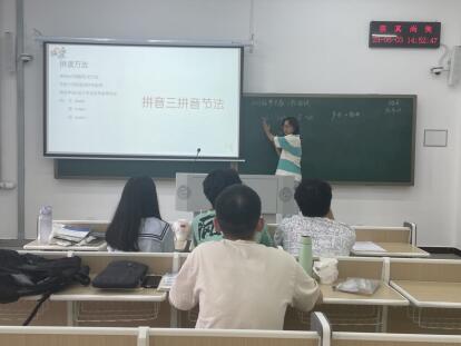 志愿者们的讲解生动有趣,何佳瑶同学以诗一般的谜语作为开场白,她用幽默风趣的授课方式带领同学们领略语文的奥秘;来自工设12101班的陈华屹用活泼的语言与灵活生动的肢体表达来讲授拼音三拼音节法。当面对扮演小朋友的评委的“提问”时,志愿者们也能够随机应变,应对自如。慢慢地,等待试讲的志愿者也融入了课堂,整个课堂氛围活跃了起来,严谨却不失趣味。“详细讲,不要一概而过。”“把我们当成你的学生,考虑学生的接受能力。”每位志愿者的表现都会被多位有丰富支教经历的同学细致点评。