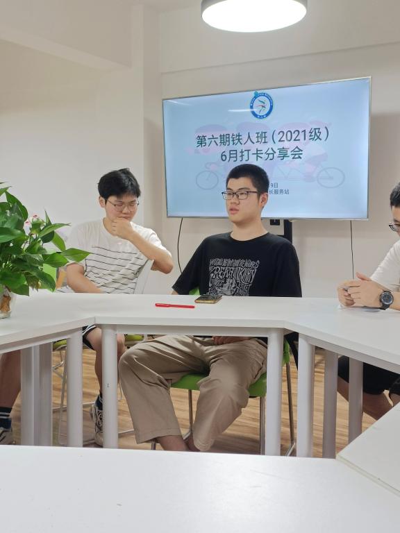本次分享会以铁人班各成员6月所经历之事,所阅读的作品的分享为主体,互相提出自己的感悟或见解供团体探究。大家共同进步,努力养成坚持锻炼坚持读书的良好习惯,将铁人班首月成立时取得的成效完美延续下来。今后会根据成员们学业情况以及假期安排合理调整日常打卡任务。
