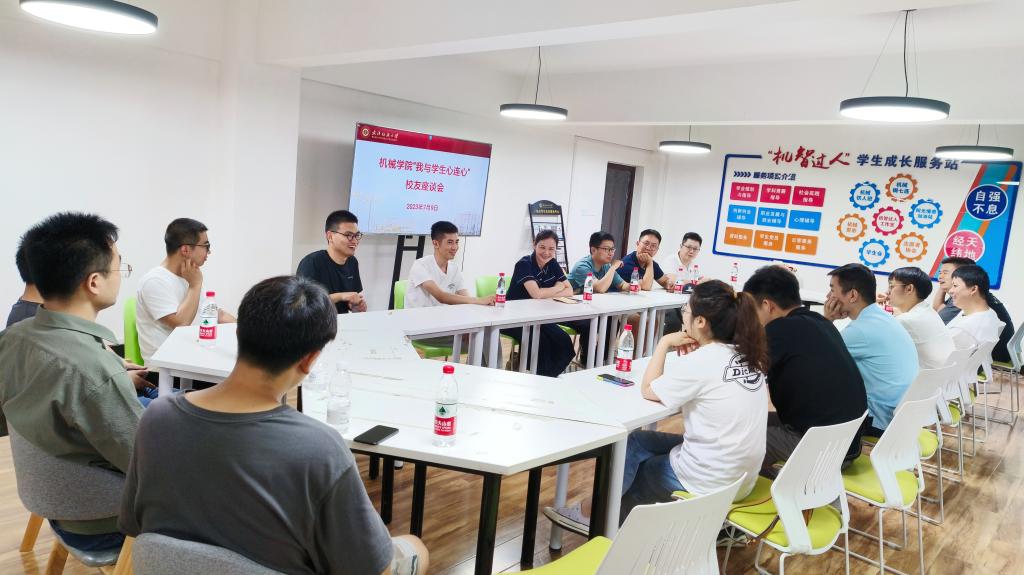 7月9日上午,我院机设098班校友返校与暑期留校学生代表在“机智过人”学生成长服务驿站畅谈学业发展,并慰问留校学生。