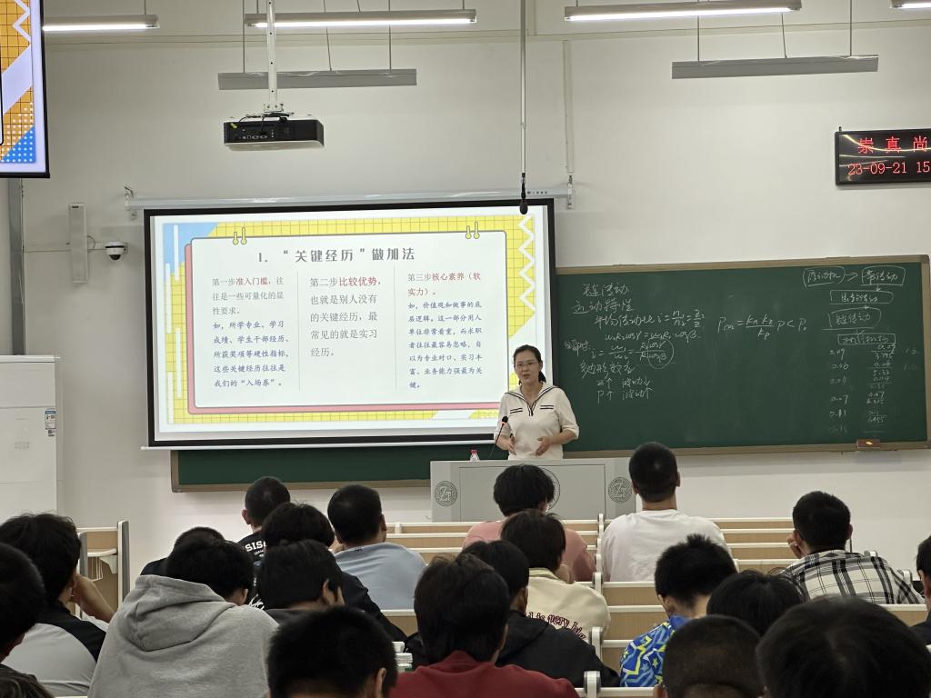 9月21日,周书记在讲座中指出,一是要关键经历做加法,对本科期间的查漏补缺照镜子一样对标自己,不断进行巩固和加强。第一步准入门槛往往是一些可量化的显性要求,第二步比较优势是别人没有的经历,第三步核心素养是软实力。二是要目标探索做减法,确定未来目标,摸清未来究竟想要做什么。三是要思考研究做乘法,提升知识技能,注重应用导向的求职技能。四是要等待观望做除法,做好计划,珍惜时间,把握核心重点,做好目标导向,做到气度、智慧、知法、守法。