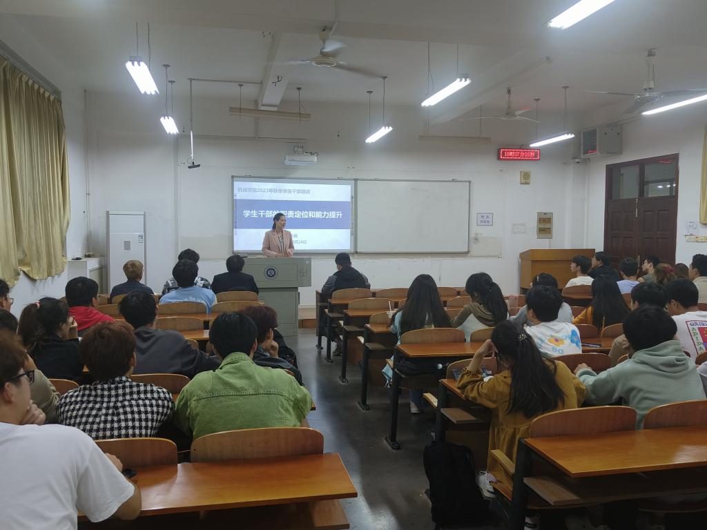为进一步加强学生干部队伍建设,提高学生干部的综合素质和工作能力,更好地开展学生工作,发挥基层班团组织和学生干部“自我教育、自我管理、自我服务”的积极作用,10月24日下午,永利集团召开新任学生干部培训会。学院党委副书记周玉艳担任主讲,团委指导老师方林和全体新任学生干部参加了培训会。
