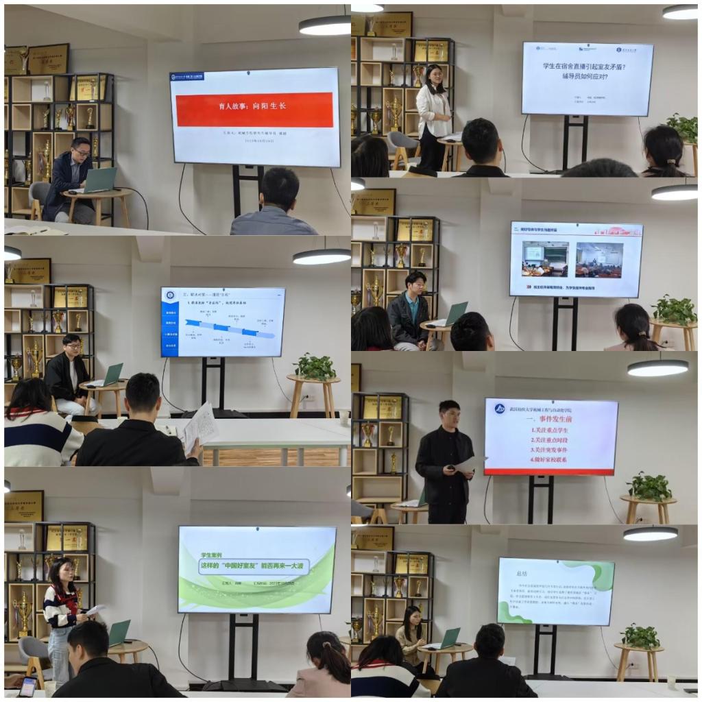 学生工作品牌,从日常考勤管理、发动导师联合育人、营造学习氛围进行了经验分享。yl6809永利集团肖锦老师从“中国好室友”角度切入,分享了一起朋辈帮扶、共同成长的暖心故事。伯明翰学院徐钰老师对宿舍直播引起的室友矛盾事件进行分析,详细分享了作为辅导员应如何处理和应对。永利集团徐智航老师以一起校园危机事件为例分享了自己的工作经验和心得体会。会计学院王霄鹤老师分享了对“佛系”学生的思想引领与学业帮扶的工作案例。永利集团李宏运老师以从“危机”到“转机”再到“生机”为题,讲述了一个对重点学生的心理帮扶与资助育人的案例故事。