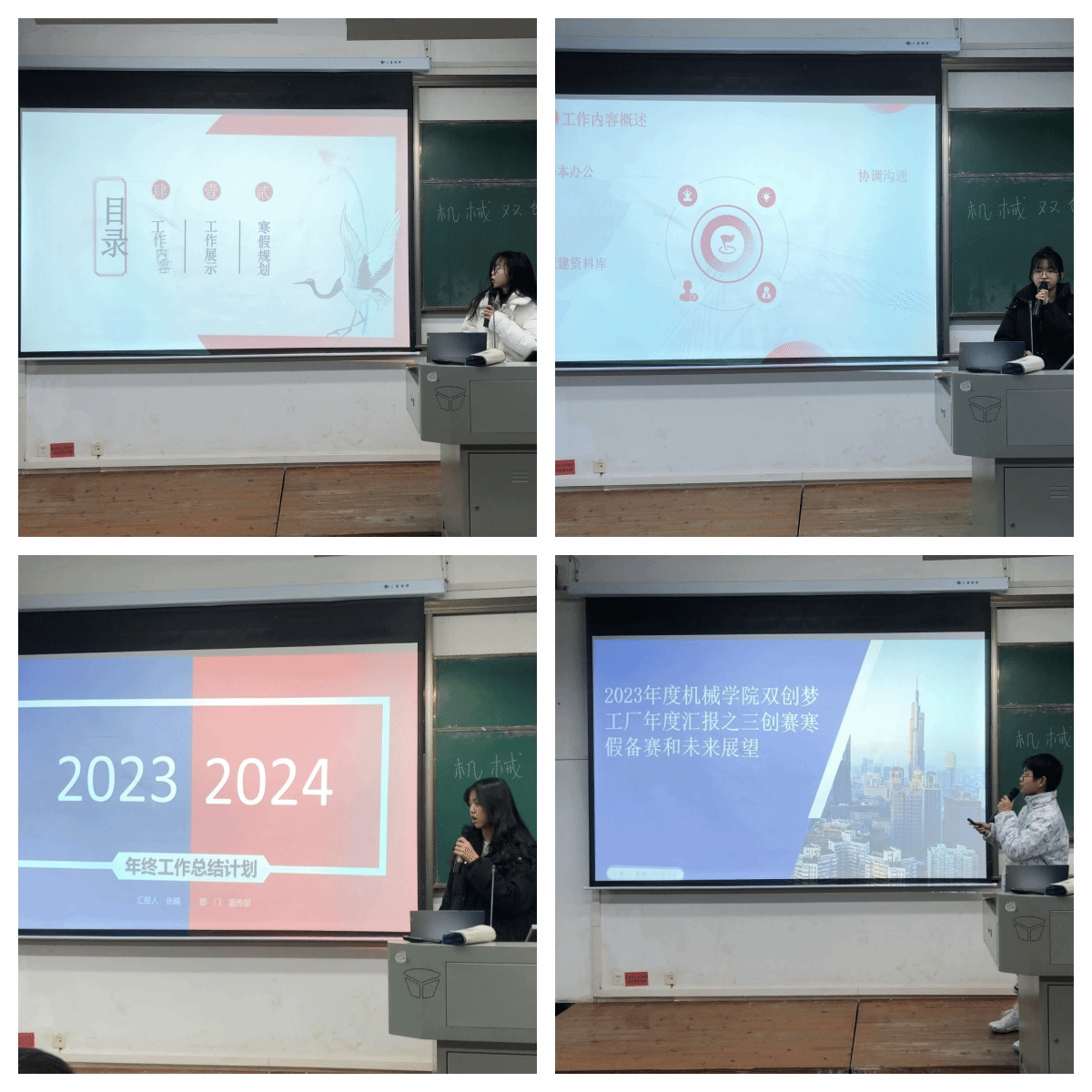 2024年1月10日,yl6809永利官网集团永利集团机械双创梦工厂在三号教学楼T102教室开展了永利集团双创梦工厂年度总结大会。会议由陈永康主持,23级辅导员参加,经济学院闫育杰,永利集团及其他学院同学到场聆听。