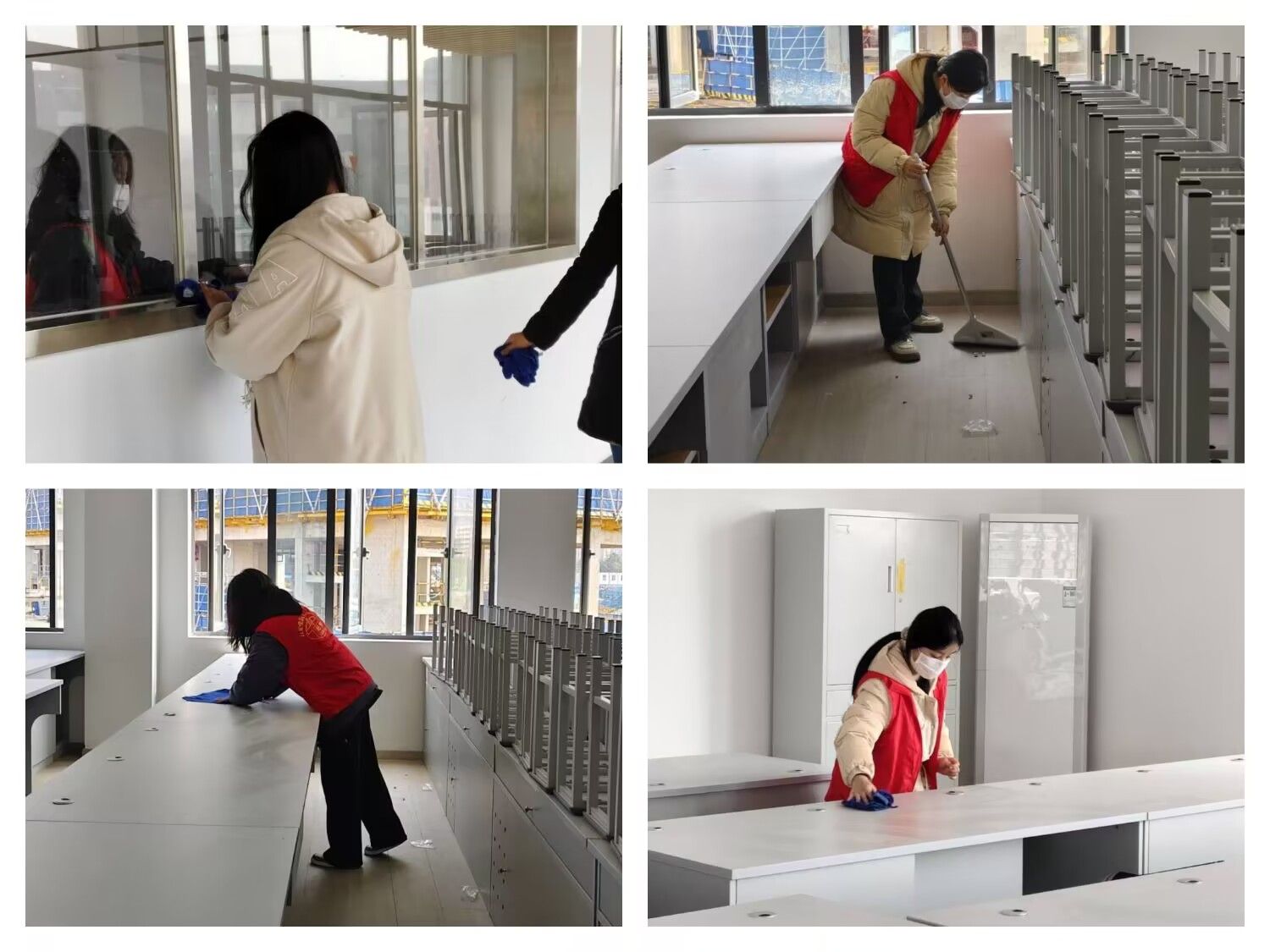 清扫后,脏乱的地面变得整洁,污垢的玻璃变得透亮,杂乱的桌椅变得整齐。这是志愿者们忙碌后的果实,更是属于志愿者们的骄傲,也是在这个特殊的季节武纺机械志协对雷锋精神传承的表现之一。