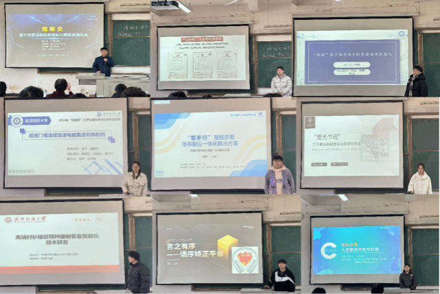 各支队伍代表结合PPT对各自的项目进行现场展示。各组代表从项目背景、产品功能、项目安排、产品风险及竞争力等角度对其研究成果展开介绍,不仅注重项目的商业模式、发展前景、创新成果,还展现出注重社会现状、关注社会民生、解决社会问题的意识,展现出机械学子们对创新能力的追求和对更美好社会的向往,也顺应了国家和时代对创新人才的需要。