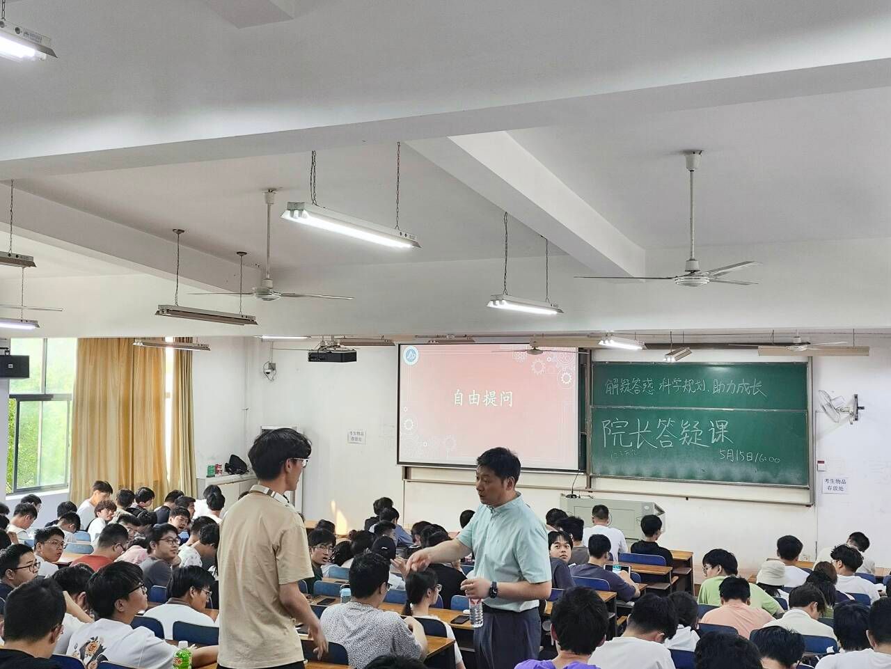 自由提问环节中,同学们表现了对日常课程教学、考研考公选择、就业方向、未来科研方向、实习实践、校园环境等问题的关注。余院长结合学校整体安排和学院实际情况,一一为大家解答,同学们纷纷表示此次答疑课收获颇丰,更加明晰了方向和具体实操的方法。