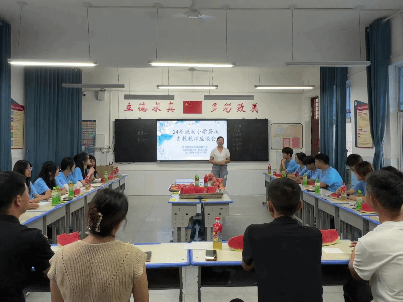 2024年7月18日,一场别开生面的支教老师座谈会在洛阳伊川县河滨街道浥涧小学成功举行,本次座谈会旨在各在校领导老师与yl6809永利官网集团拓梦支教队小老师们深入交流支教经验,探讨教学新思路新方案,创新各类教育教学活动,为浥涧小学暑托教学活动注入新活力。