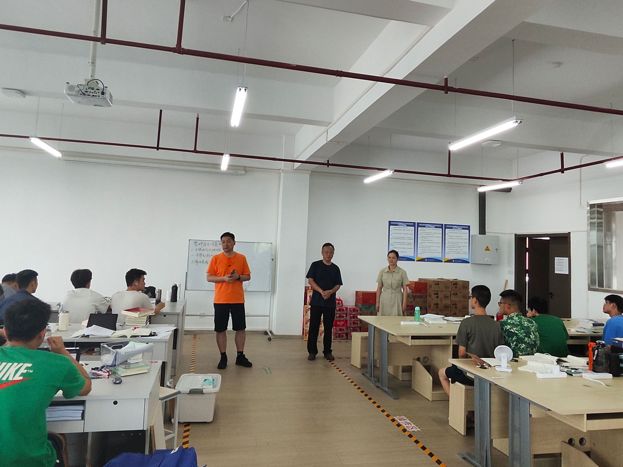 干书记鼓励同学们要坚定信心、脚踏实地、实事求是,准确把握自己的定位,选择报考上岸率高的院校,切实做好升学、就业规划,保持和辅导员和班主任的沟通、交流,同时也要严格遵守暑期留校期间管理。他强调学院领导班子高度重视留校考研备赛学生的学习和生活状况,全院的领导和老师会竭尽全力为留校学生做好后勤保障和服务工作,希望同学们认真学习,坚持到底。同学们纷纷表示,非常感谢学院领导和老师对大家的关心和慰问,他们将充分利用学院提供的良好条件,努力学习、学有所成。