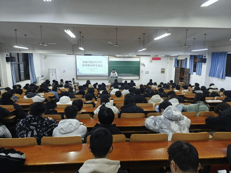 首先,由许佳伟同学简要介绍了这四位同学在本科期间所取得的一系列成果和成绩,号召大家向榜样看齐。随后,张益源同学以《大学如何做到学习生活两不误》为主题,结合自身经历,分享了自己的学习经历,传授了学习经验,并指出丰富大学生活的同时也应不忘学习,提升自我;随后,张庆乐同学以《组建科创团队的方法路径》为题,讲述了自己是如何结识他们团队负责人并加入其科研组以及近期取得的研究成果,同时鼓励大家在大学期间应努力拓展自我,多参加讲座及一些研究培训。之后,陈永康同学围绕《学科竞赛:目的与方向》展开讲述,以项目为导向,发现问题,解决问题,提升自我。同时,还分享了学习机械原理、设计、制造等课程的经验,使同学们受益颇丰;最后,熊子璐同学简要介绍了自己取得的一些科研成绩,之后他主要围绕《科研项目的探索历程》向同学们阐述了参与科研项目的背景、目的、科研思路、研究方法等,同时强调了本科生学术研究与交流对于培养创新思维和实践能力的重要性。