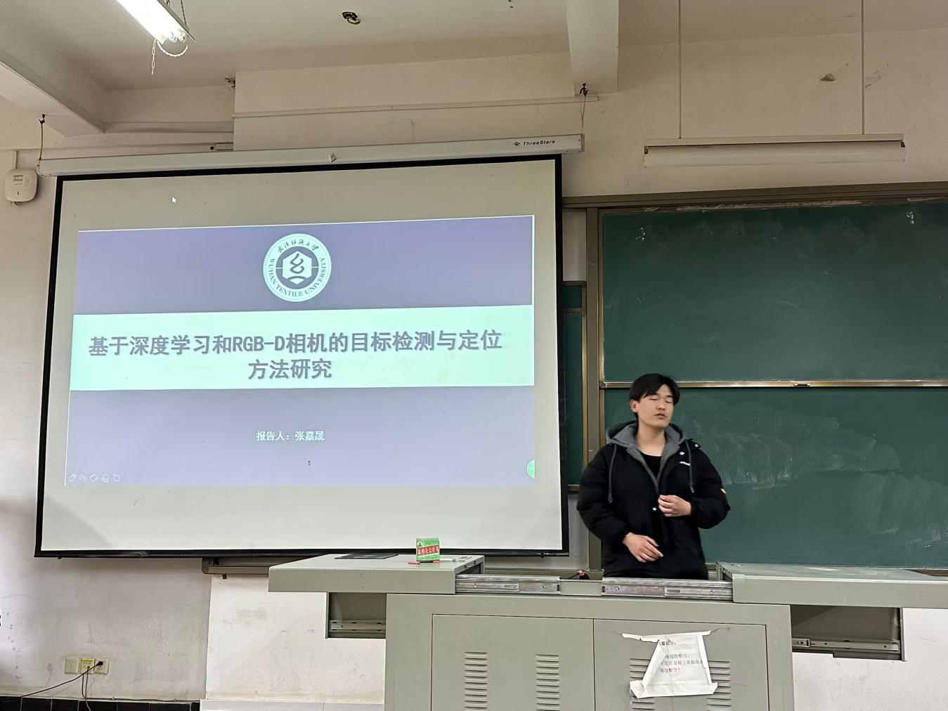 张嘉晟同学的研究内容是“基于深度学习和RGBD相机的目标检测与定位方法研究”。沈忱老师针对张嘉晟同学的分享给出了建议:一是三个部分的目标还不够明确,没有侧重点,后续可以突出项目的侧重点;二是后续完善可以将项目再捋清晰一些,突出创新点。