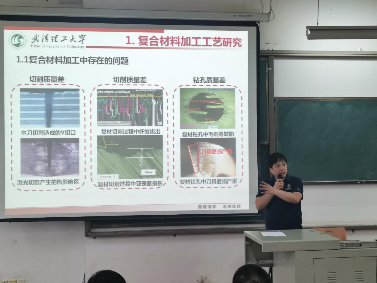 2023年5月23日,应我院邀请,武汉理工大学机电工程学院院长吴超群教授在8D201教室为我院师生做了一场题目为《机器人加工技术》的精彩学术报告,报告介绍了机器人加工技术在制造复合材料加工、磨削、检测等方面的研究进展和应用情况。本次学术报告由学院院长余联庆教授主持,学院党委书记干文勋、副院长张成俊教授、相关专业老师和研究生参加了本次报告。