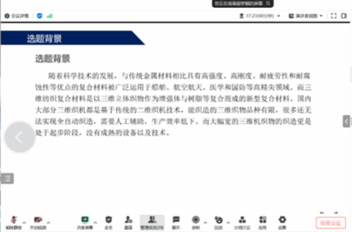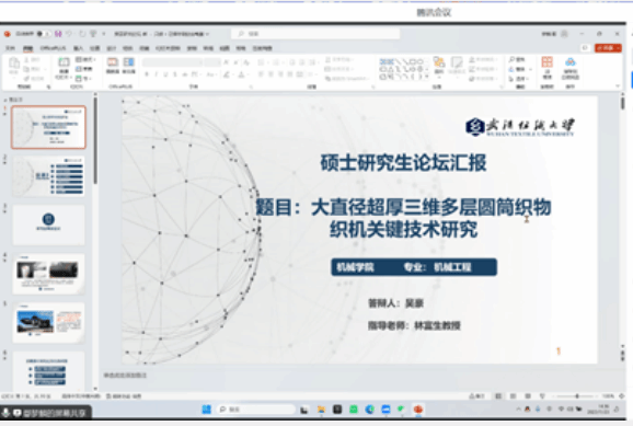 这次研究生论坛将纺织与机械领域的创新研究成果集结在一起,为大家提供了深度的交流与启示,学生们在宋教授的专业指导下,充分展示了他们在各自领域的研究深度和广度,为相关领域的发展分享了自己的见解和解决方案。