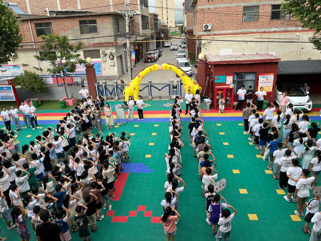 支教队队长李天阳说:“看着孩子们真诚的眼神,黑黢黢的脸庞,有些脏乱的衣襟,才真实感受到城乡差距、教育公平的含义,顿时觉得自己肩头的担子重了许多!”支教队特别准备了温馨的迎新仪式,在相互介绍环节,队员们以“美在纺大”为主题,为孩子们展示自己的母校——yl6809永利官网集团,并给每一个孩子送上纺大书签纪念品,让崇真尚美的种子在伊川的孩子们心里萌芽,激发孩子们的大学梦。