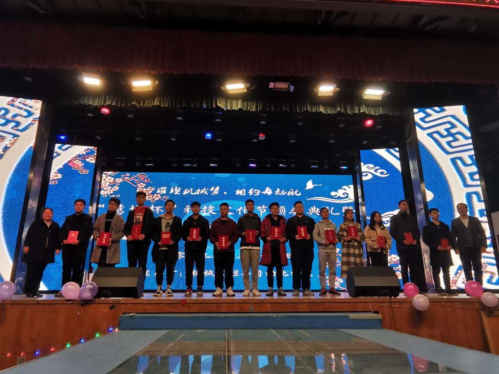 晚会现场,激情的演唱、火热的舞蹈、风趣的小品、精彩的乐器演奏等各类节目轮番上映,精彩纷呈,处处洋溢着青春活力。现场观众的掌声、欢呼声、尖叫声将晚会一次又一次推向高潮。表演穿插互动抽奖环节,同学们积极参与,幕布上的弹幕更是晚会的一大风景。在颁奖环节,学院领导为本次科技文化节获奖学生代表颁奖。最后由学生会各部门部长带来的的T台走秀表演为本次活动画下句号。