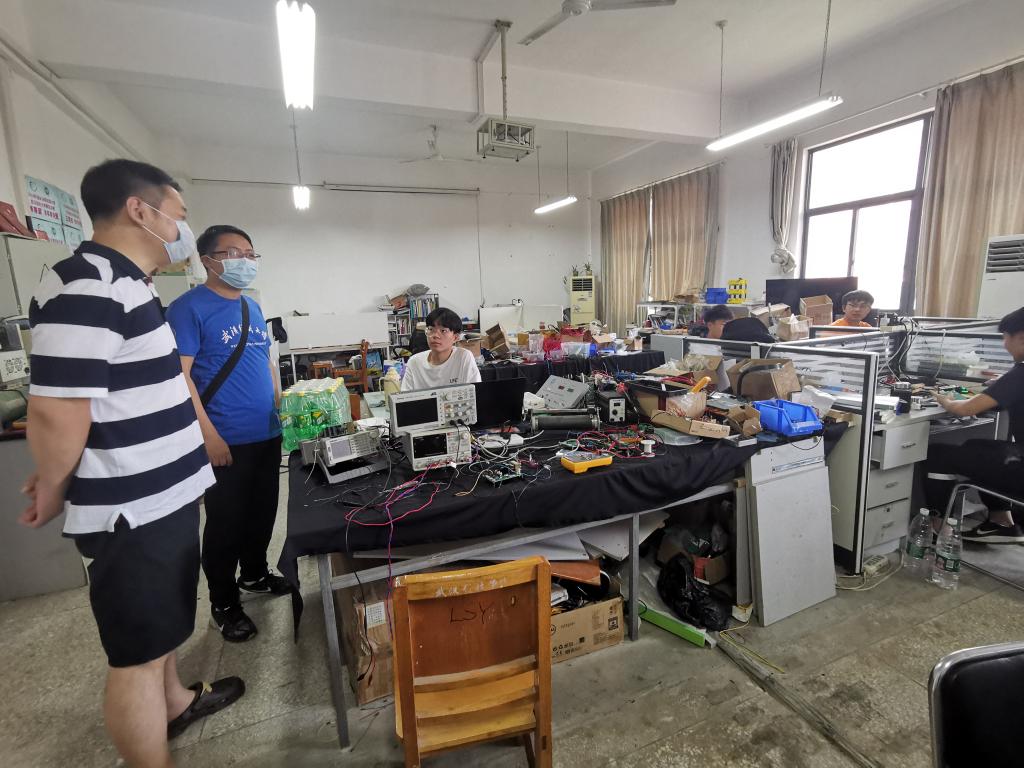 在实验室,学院领导看望正在备战学科竞赛的同学们,勉励大家好好备赛,努力培养创新思维与工程实践能力,争取取得更好的成绩。