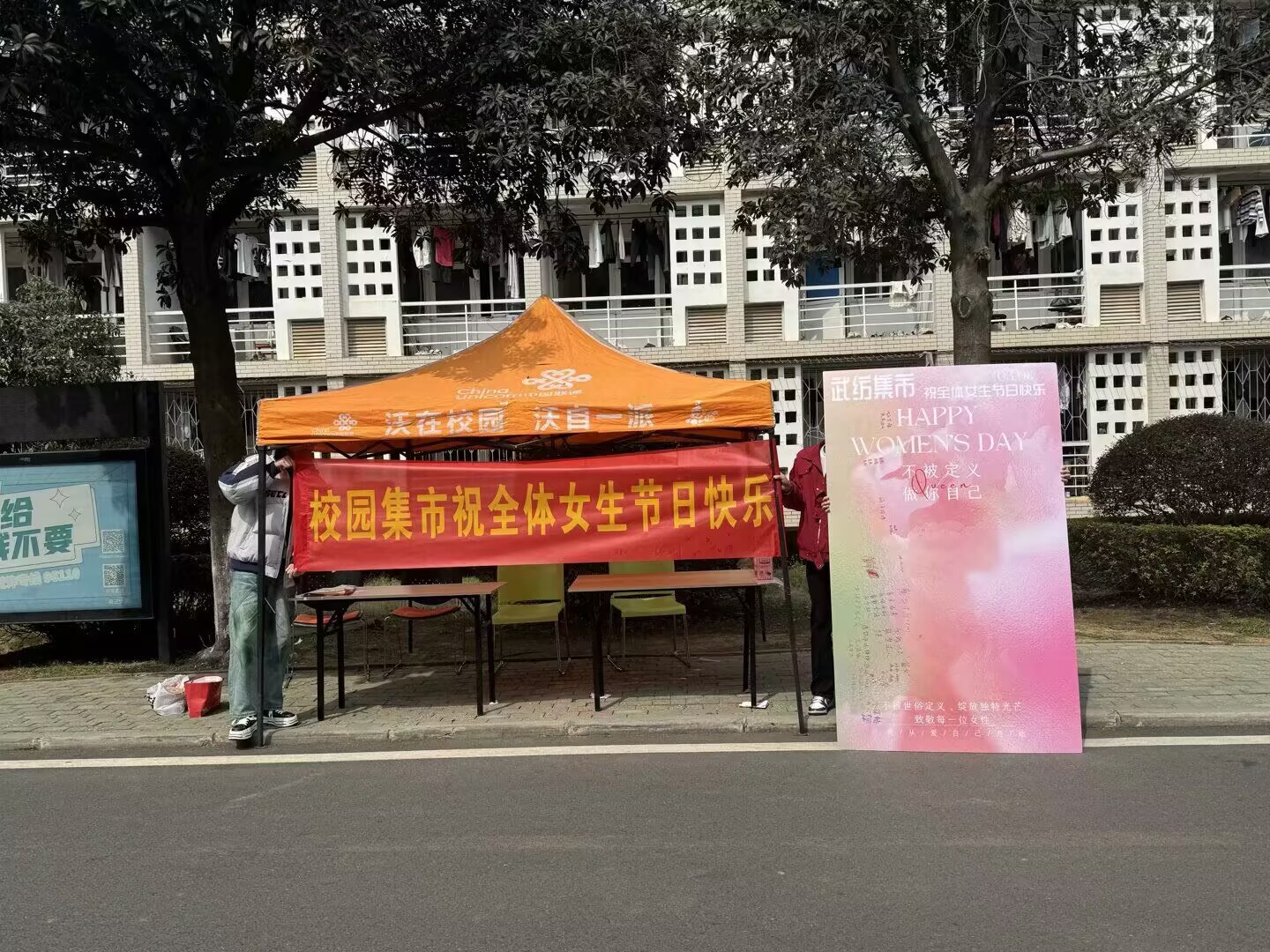 在国际劳动妇女节之际,永利集团开展“爱自己 做不被定义的自己”主题活动,校园集市赞助活动了KT板与横幅,共同祝福纺大全体女生节日快乐。