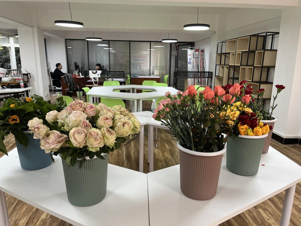 中午十二点二十分,向日葵心理工作站肖蜜向同学们介绍讲解了花束的制作方法和注意事项,在清楚了制作方法后,男同学们纷纷跃跃欲试地开展了花艺大比拼,精心准备给女同学们的节日礼物。