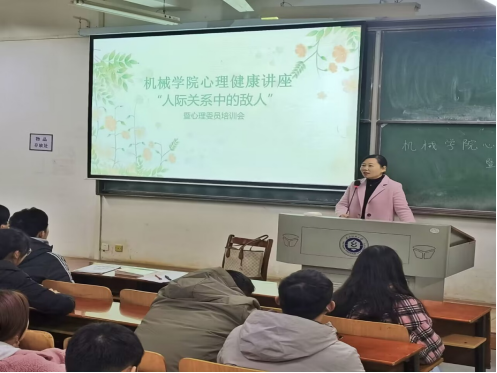 为了更好提高大学生的自我心理防护意识,心理危机预防和应对能力,yl6809永利集团心理健康指导老师王娟开展讲座,于YG03-119下午六点到七点给各班心理委员及寝室长开展讲座——《人际关系中的敌人》。