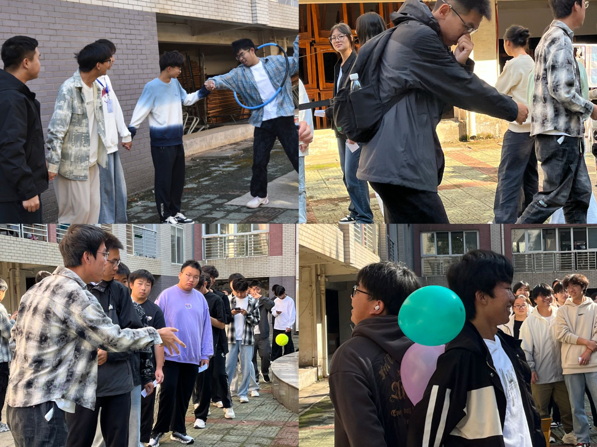 背对背夹球考验仅仅是两个人之间的默契程度,而无间道则考验的是团队的配合能力以及协作能力。在无间道关卡中,四个同学分别手持一根竹管让小球不断地在一根根竹管拼接的轨道上滚动,直到小球落入桶中为止。在游戏中每个人要保持十二分的精神,时刻注意着小球的动向以及小球与桶之间的间离,一旦发现小球有偏离轨道的趋势,要迅速调整竹管的位置和角度,确保小球不落到桶外。这种高度集中的注意力力和迅速反应的能力,不仅体现了同学们的敏捷思维,也展现了他们面对挑战时的冷静和果断。